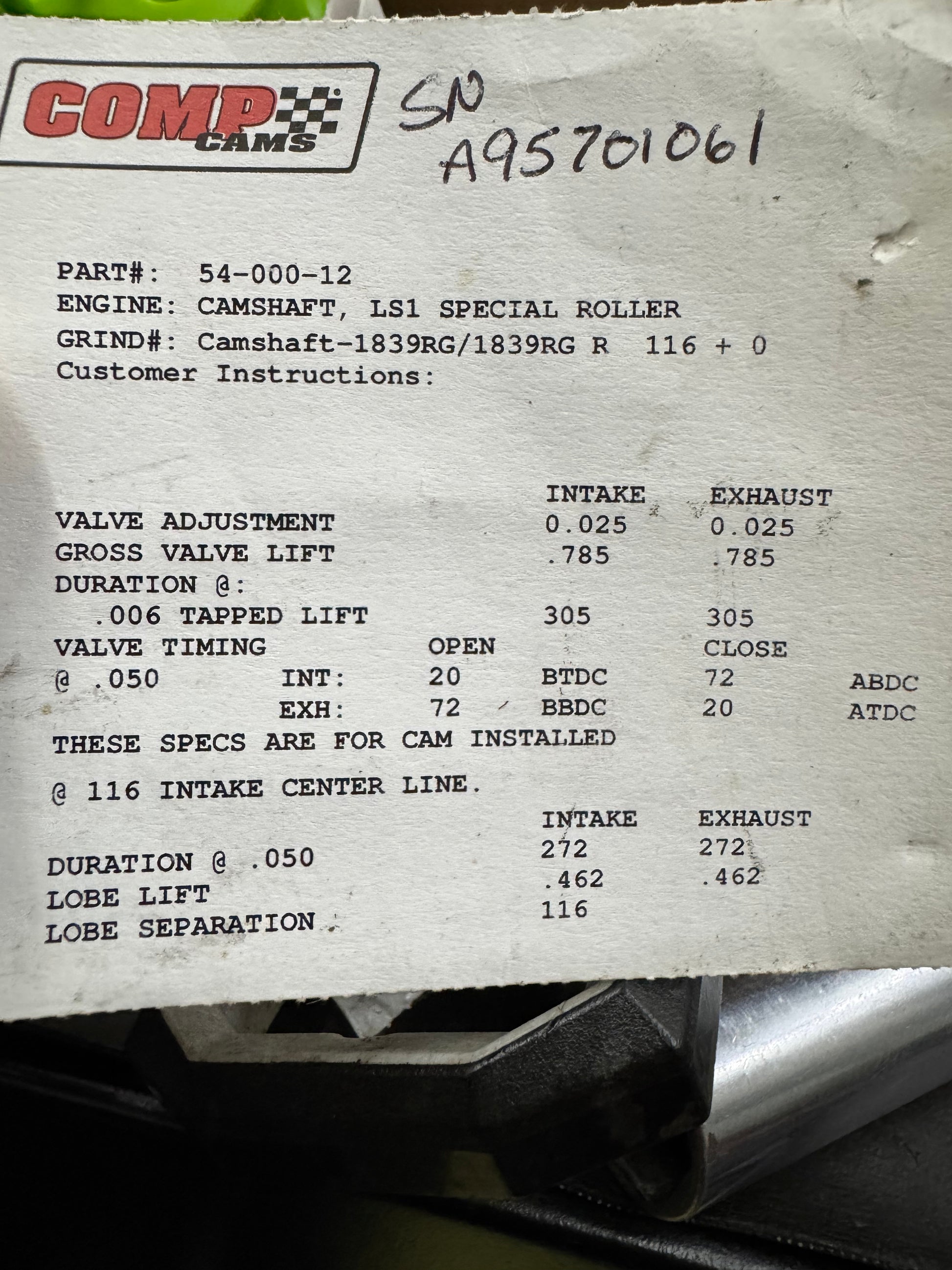 Solid Roller for LS Engine. This cam was spec by BES and I ran in my ultra engine last year. Specs in pictures